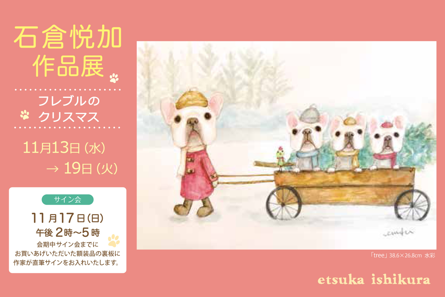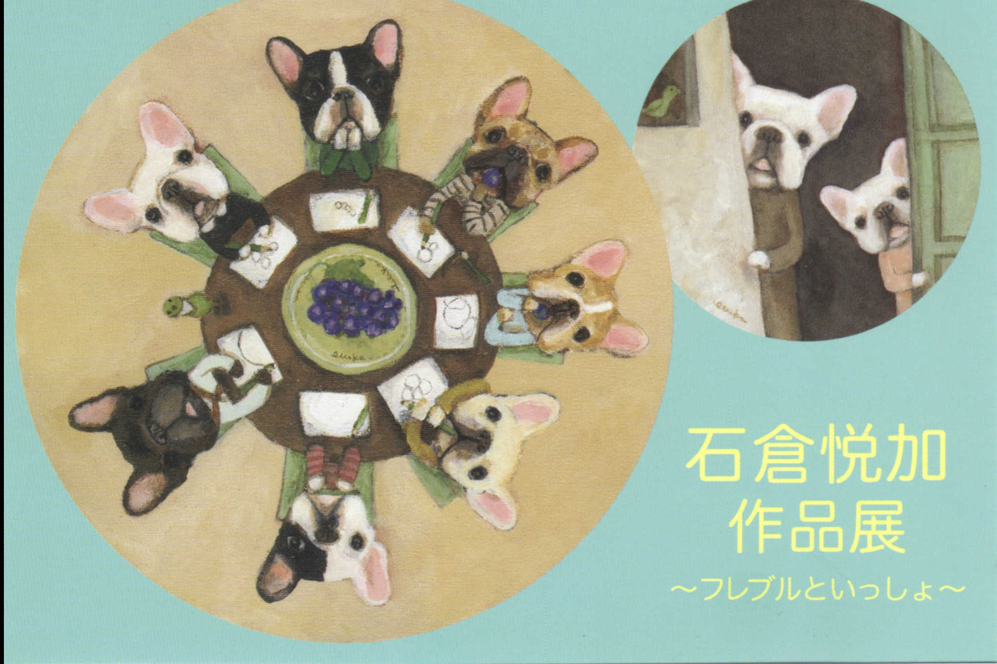 フレンチブルドッグの絵やヤギの絵を描いています。