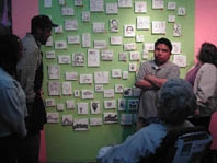 たとえば、マリアナと私の絵画の連想ゲームでは、なんでもない花の絵からはじまり、チョウチョ→カイト…彼女はカイトからPieceのプラカードを連想しました。