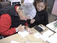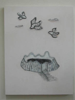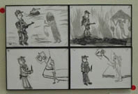 ピースマーチにいた鳥→戦車→壊れたビルの風景→戦争で負傷した人…と連想は続き最後は私とマリアナはお互いに求める平和な風景を描きました。
