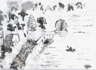 その絵をもとに、ドローイングで会話し、物語を完成させました。